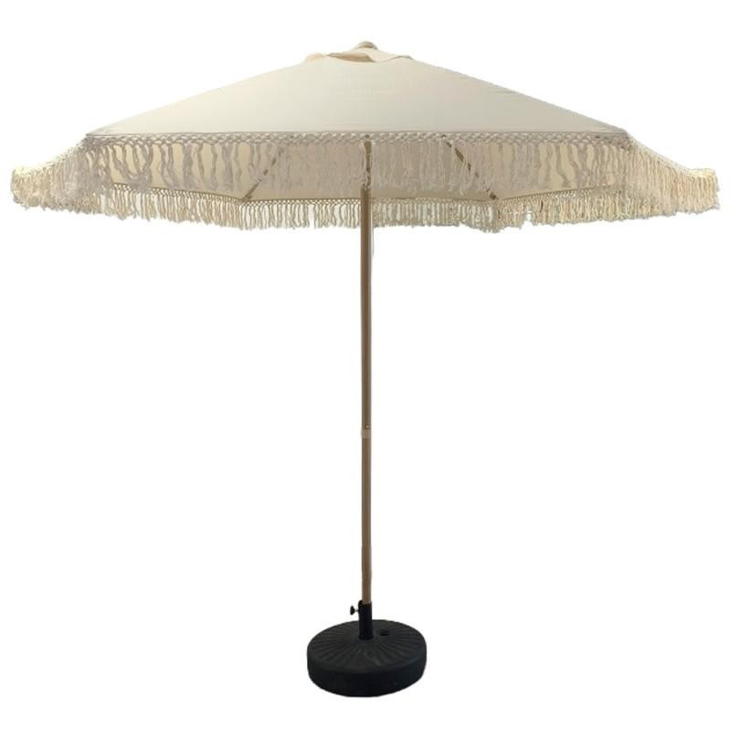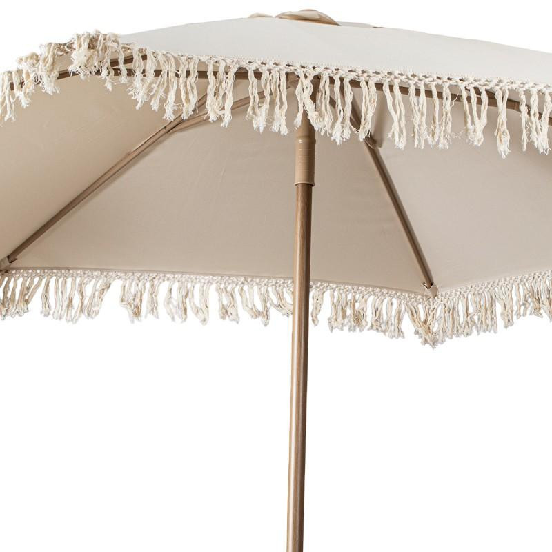 Parasol de acero y poliester con flecos en blanco 238x270x270 cm