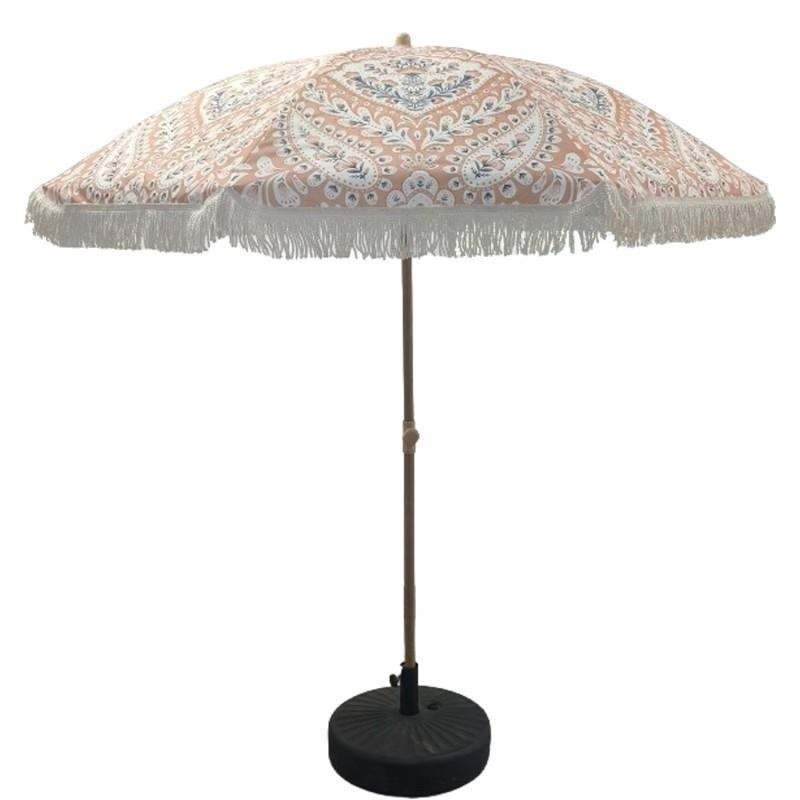 Parasol de acero y poliester con flecos en blanco, beige y verde 205x195x195 cm