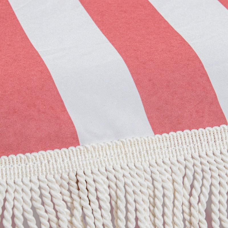 Parasol de acero y poliester con flecos en blanco y rojo 205x195x195 cm