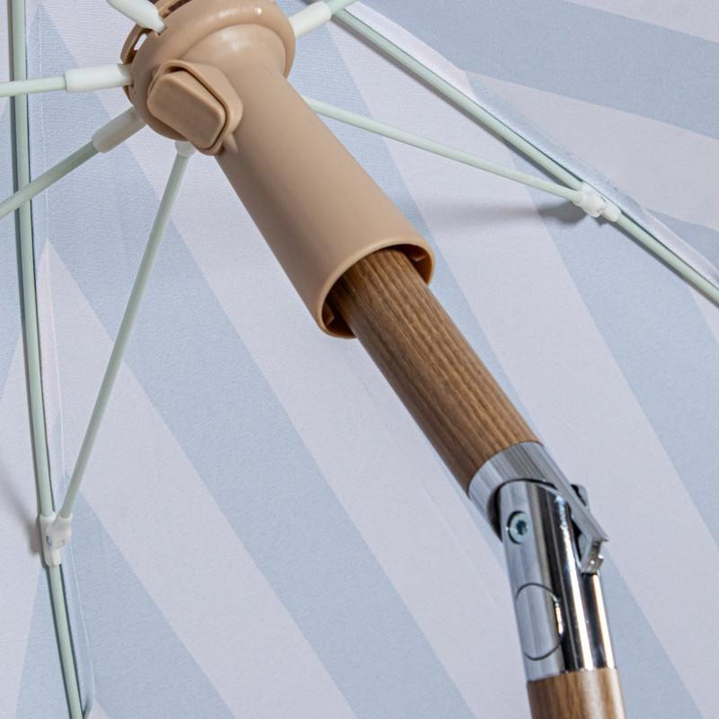 Parasol de acero y poliester con flecos en blanco y verde. Medidas: 195x195x205cm