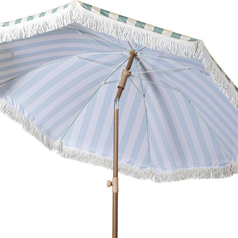 Parasol de acero y poliester con flecos en blanco y verde 205x195x195 cm