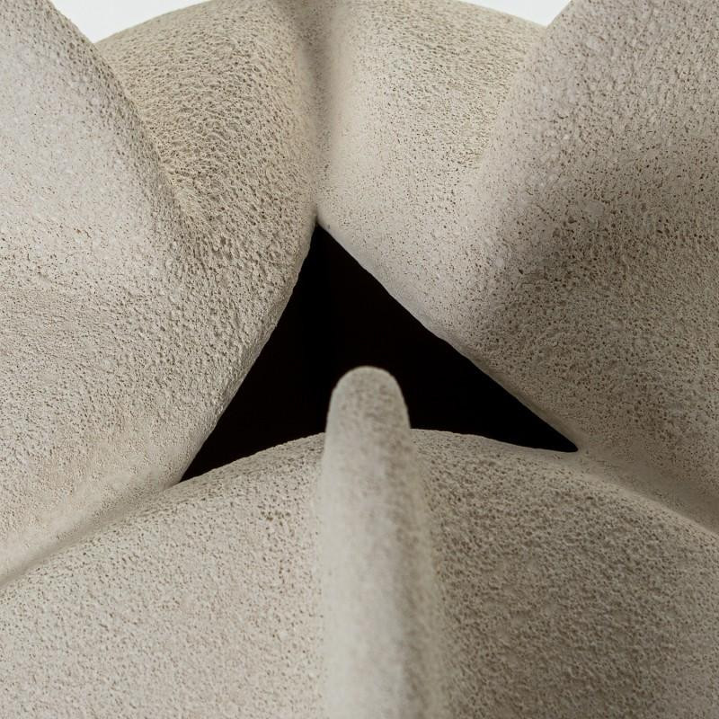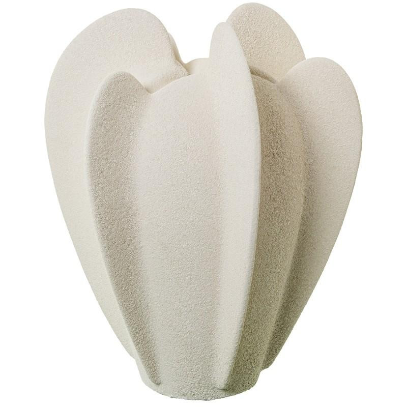 Jarron de suelo redondo con aletas de ceramica en beige arena 40x27x27 cm