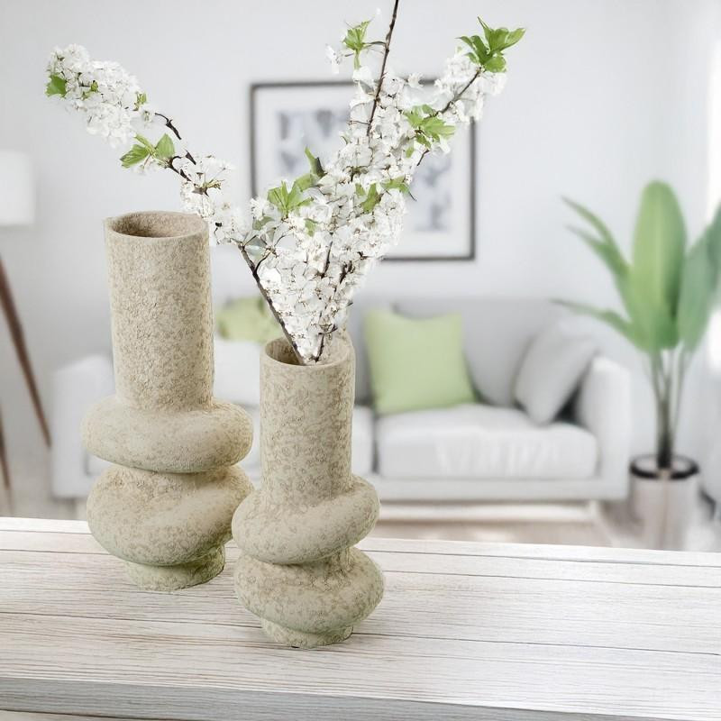 Jarron de suelo de ceramica en beige arena 40x18.5x18.5 cm