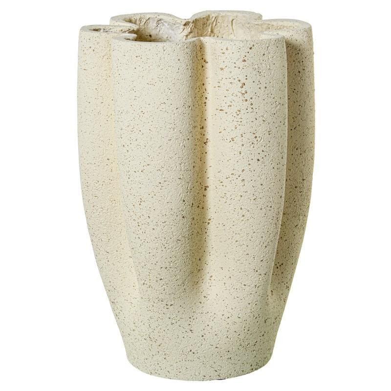Jarron con ondas de fibra de vidrio en crema brillo acabado cemento. Medidas: 30,5x30,5x46cm