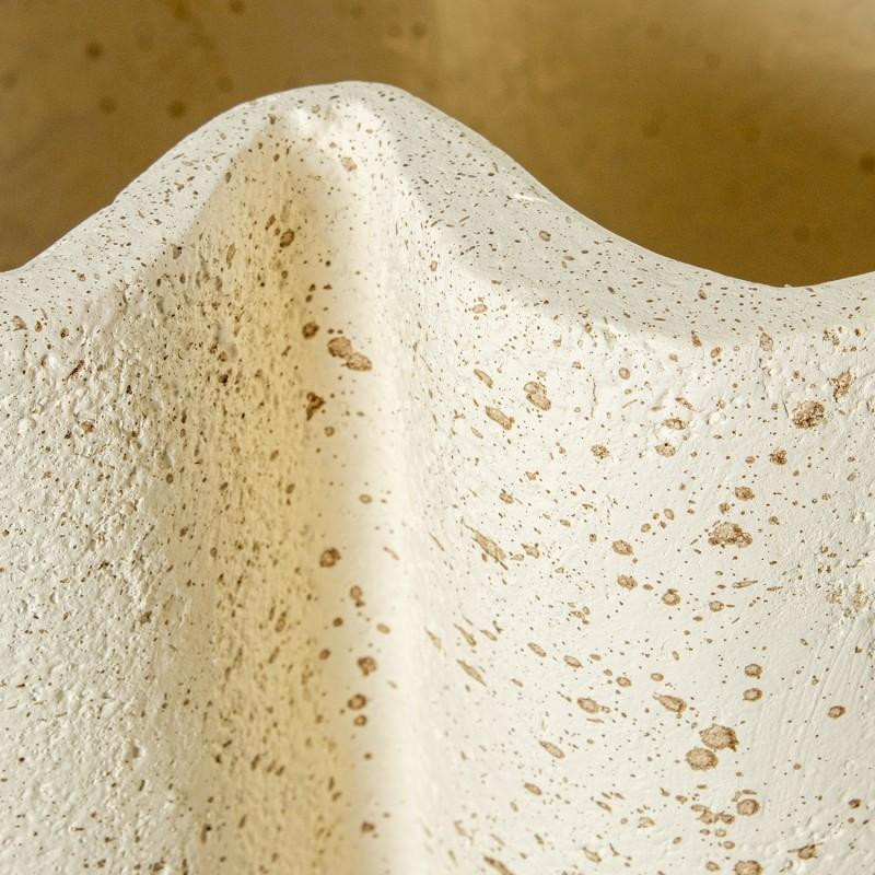 Jarron con ondas de fibra de vidrio en crema brillo acabado cemento 46x30.5x30.5 cm