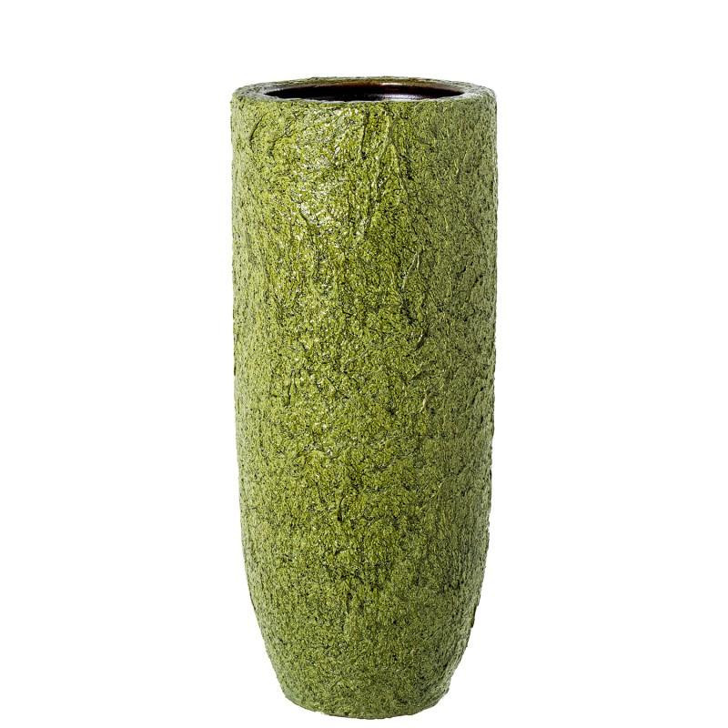 Jarron redondo de suelo de ceramica en verde rugoso 60x25x25 cm