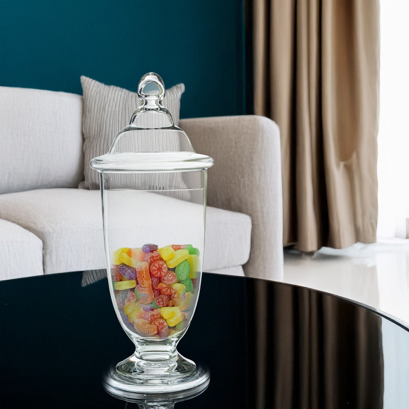 Tibor con pie y tapa de cristal transparente 20x20x35,5cm