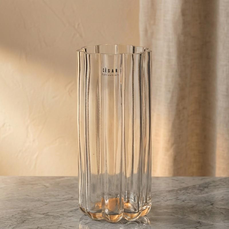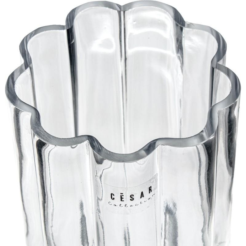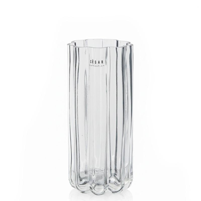 Jarron de sobremesa de cristal ondulado en transparente 24x10.5x10.5 cm