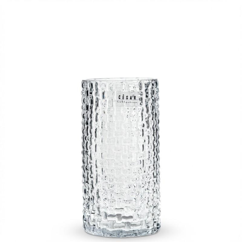 jarron de sobremesa de cristal ondulado en transparente 10,5x10,5x20cm