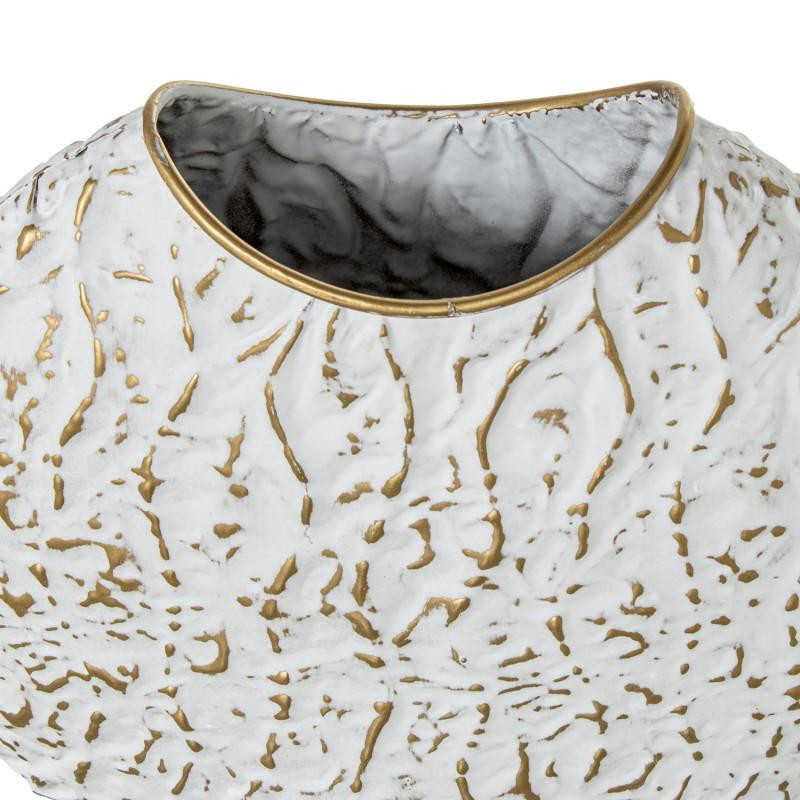 Jarron de sobremesa de metal blanco y dorado 30x32x12 cm