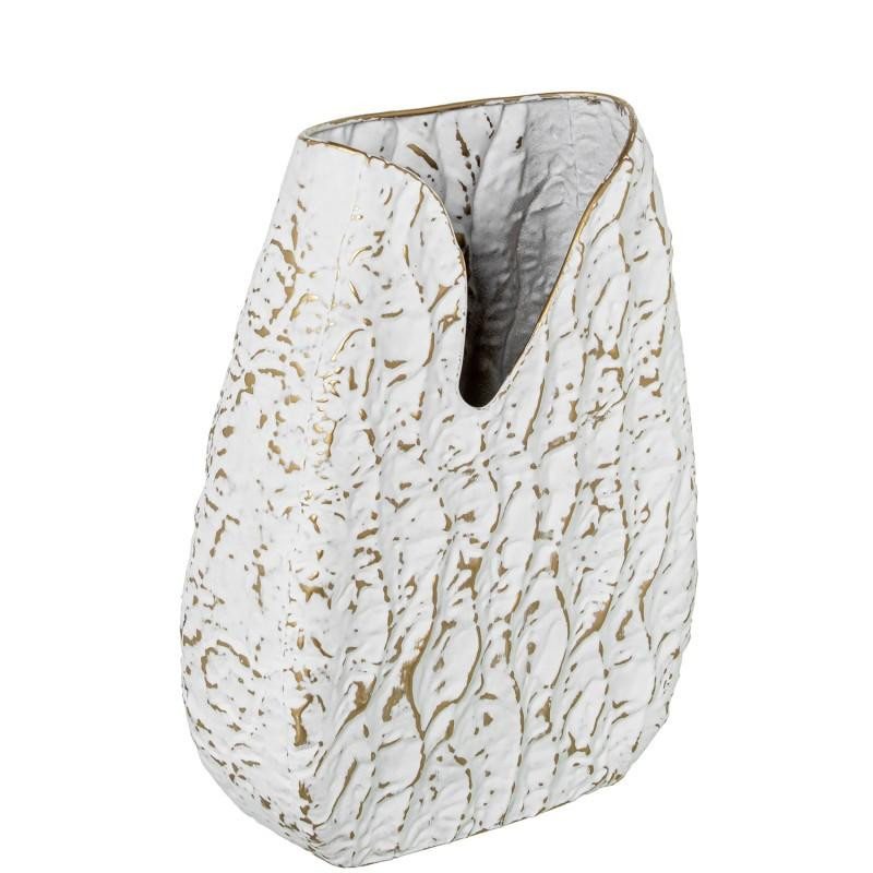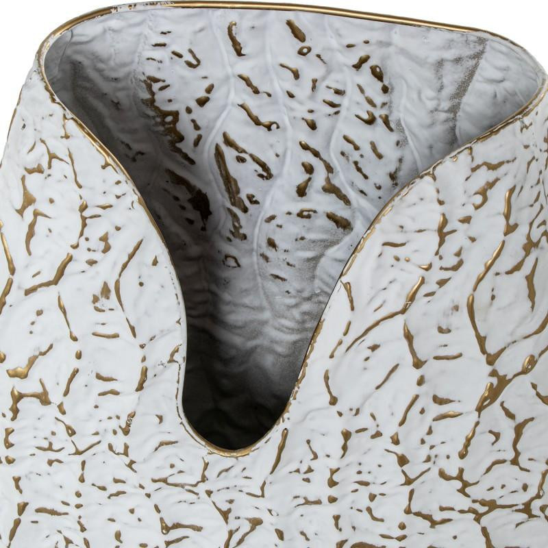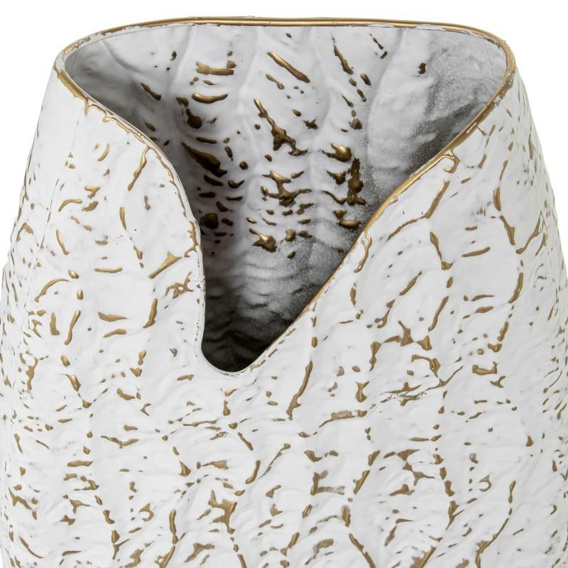 Jarron de sobremesa de metal blanco y dorado 33x24x10.5 cm
