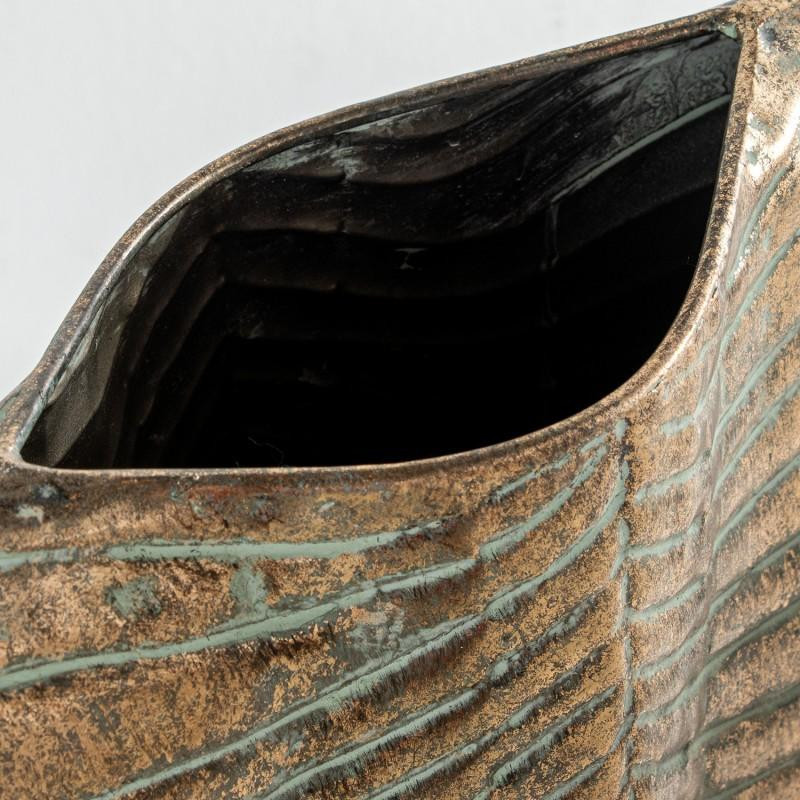 Jarron de sobremesa de metal dorado 33x26.5x7 cm