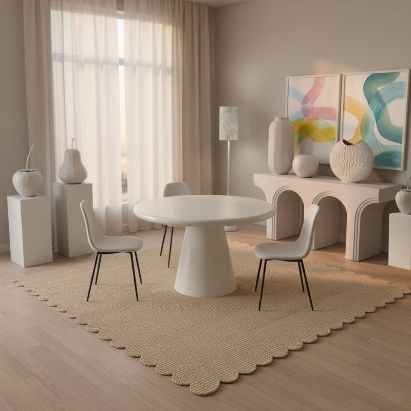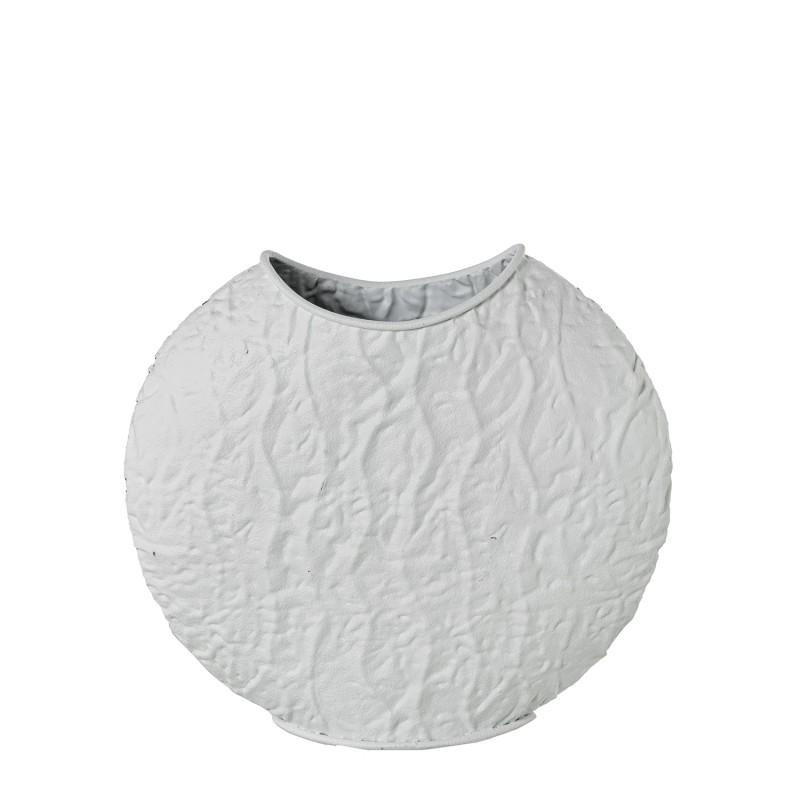 Jarron de sobremesa con forma redondeada de metal blanco 30x32x12 cm