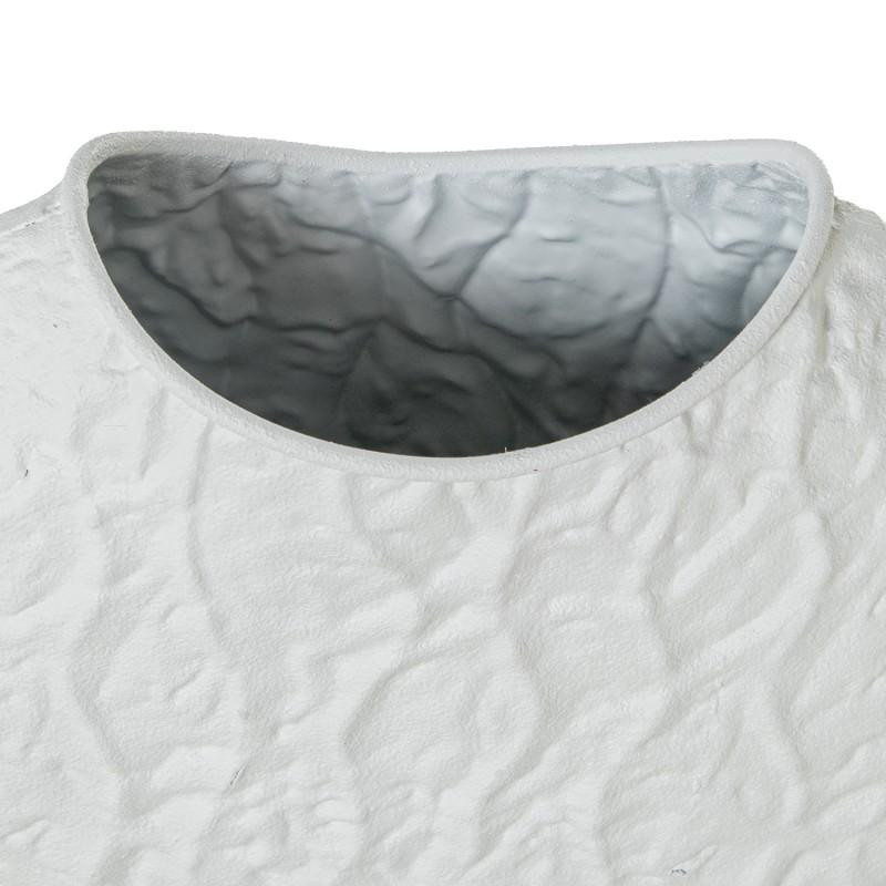 Jarron de sobremesa con forma redondeada de metal blanco. Medidas: 32x12x30 cm