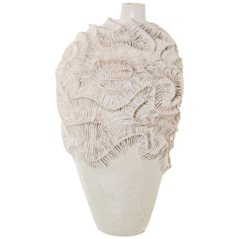 Jarron de sobremesa con corales de resina en blanco. Medidas: 21.5x23x41 cm
