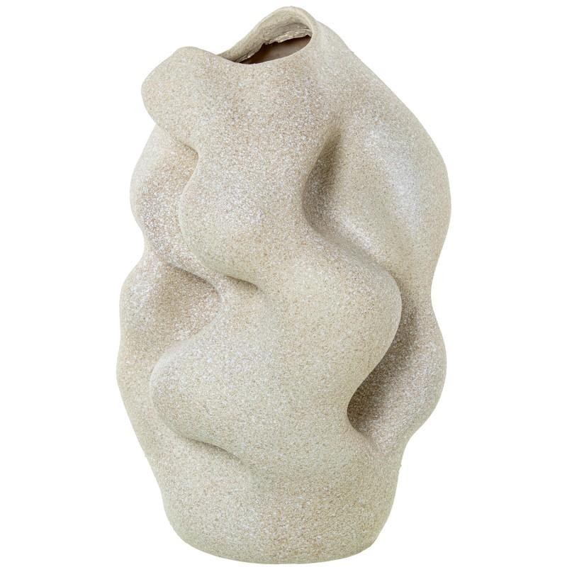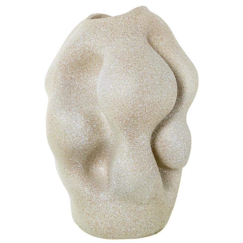 Jarron de sobremesa con forma irregular de resina en beige arena. Medidas: 28.5x26x41 cm
