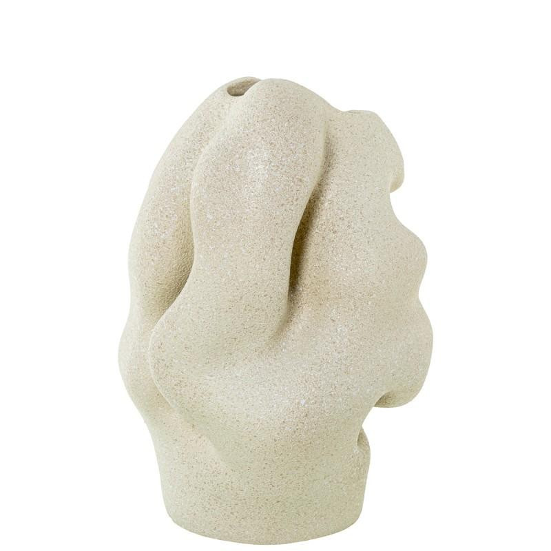 Jarron de sobremesa con forma irregular de resina en beige arena. Medidas: 23x23x32.5 cm