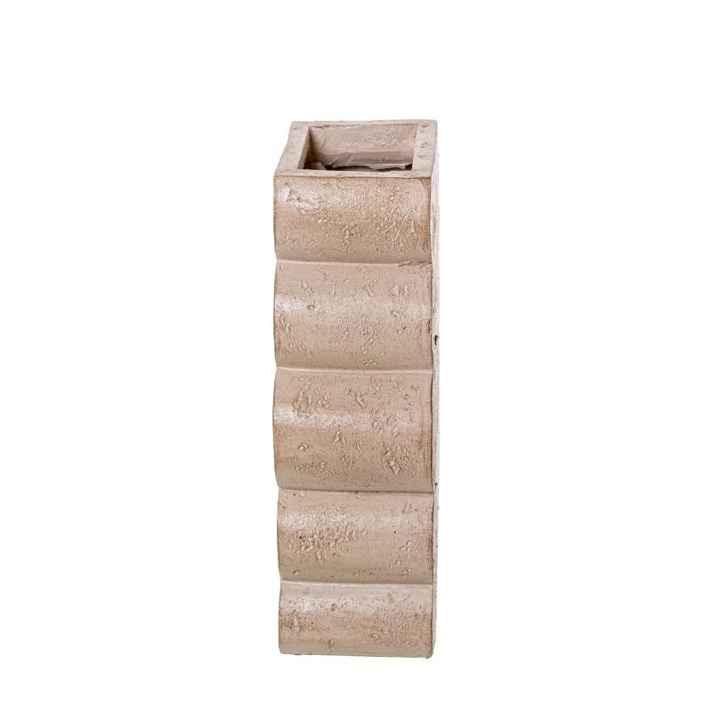 Jarron de sobremesa con formas redondeadas de resina en marron claro. Medidas: 20.5x9x27 cm