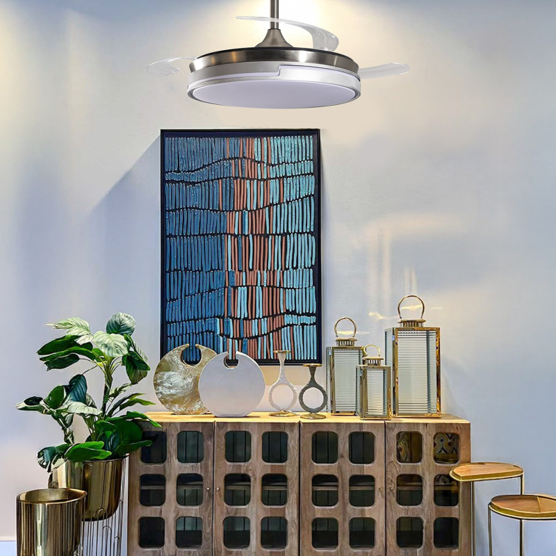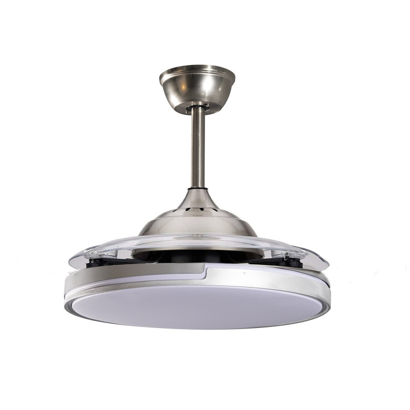 Lampara de techo con ventilador de techo con luz con aspas rectractiles plateada 106x106x45 cm