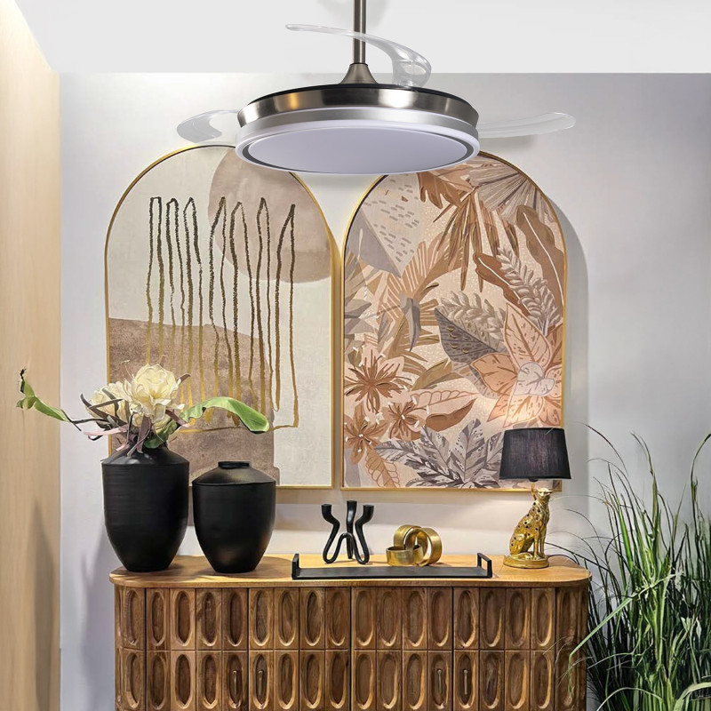 Lampara de techo con ventilador de techo con luz con aspas rectractiles plateada 106x106x45 cm
