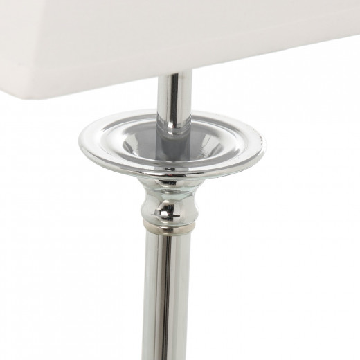 Lámpara sobremesa de metal mas pantalla en color cromado. Medidas: 25x46cm