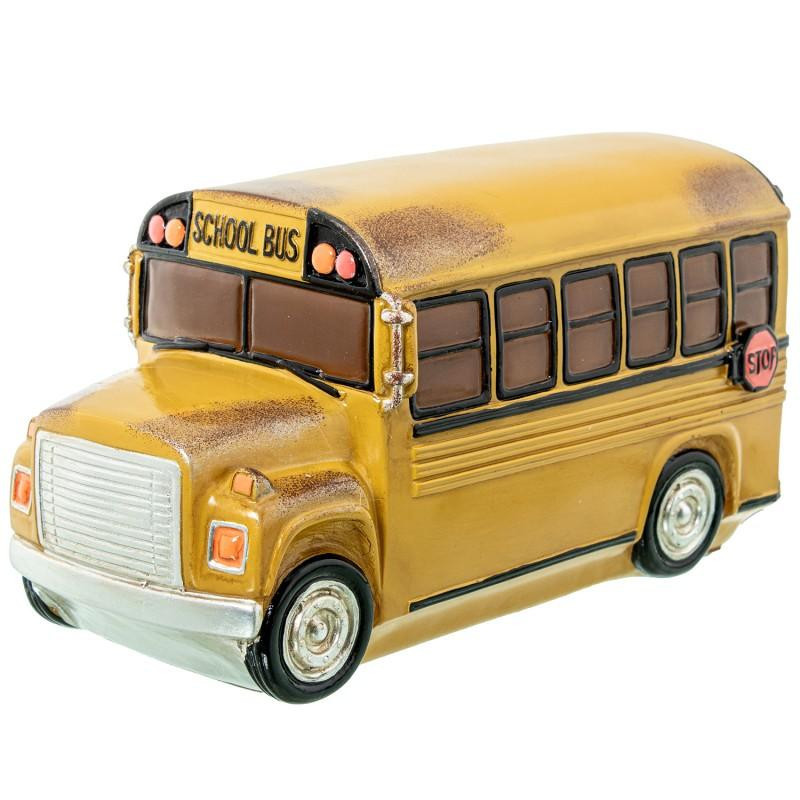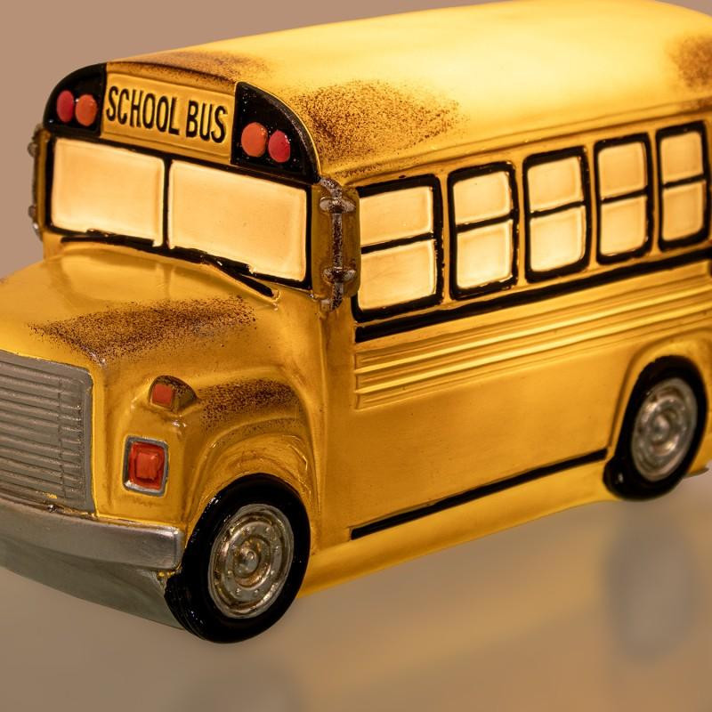 Lampara de sobremesa bus escolar de poliresina amarillo 15x25x8 cm