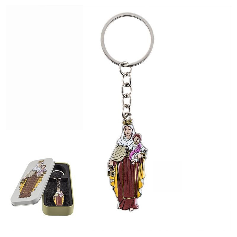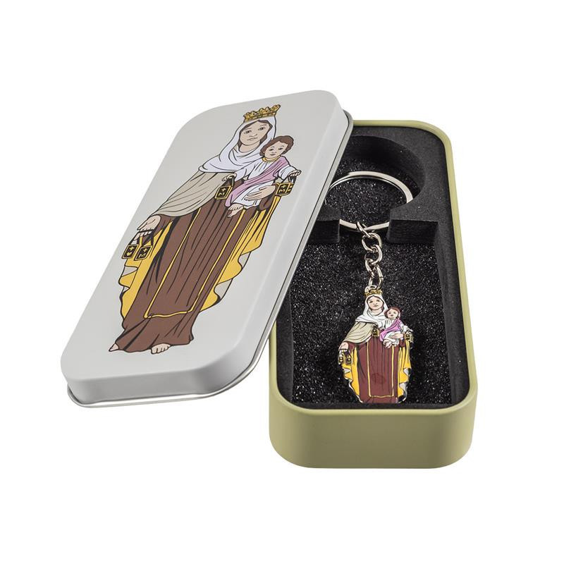 Llavero Virgen del Carmen en caja de metal 2x1x5.5 cm