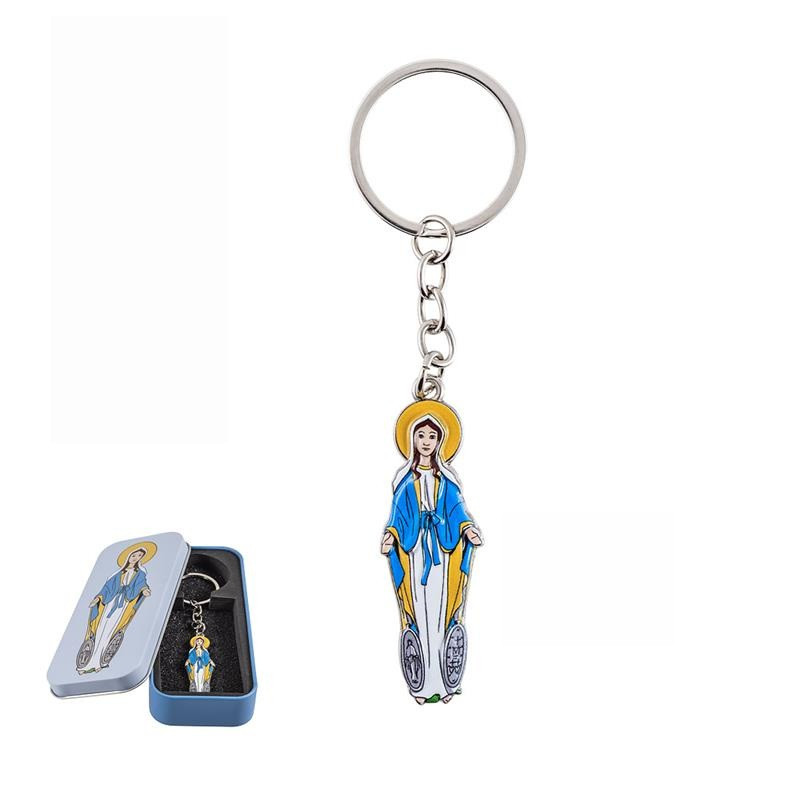 Llavero Virgen de la Milagrosa en caja de metal 2x1x5.5 cm