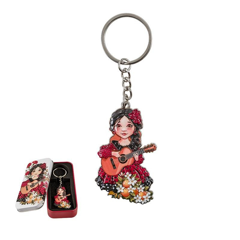 Llavero niña flamenca en caja de metal 2x1x5.5 cm