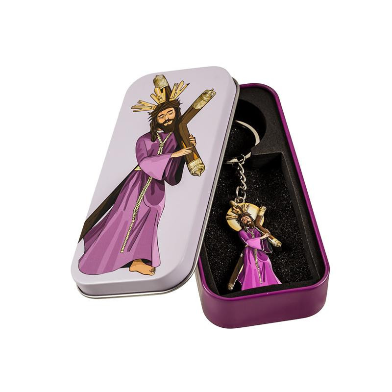 Llavero cristo del gran poder en caja de metal 2x1x6 cm