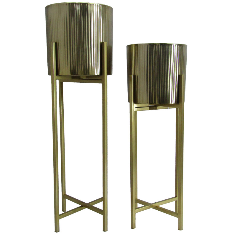 Set de 2 maceteros de metal con pie en dorado 28x28x91 y 25x25x76cm