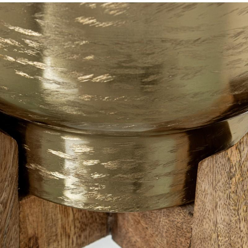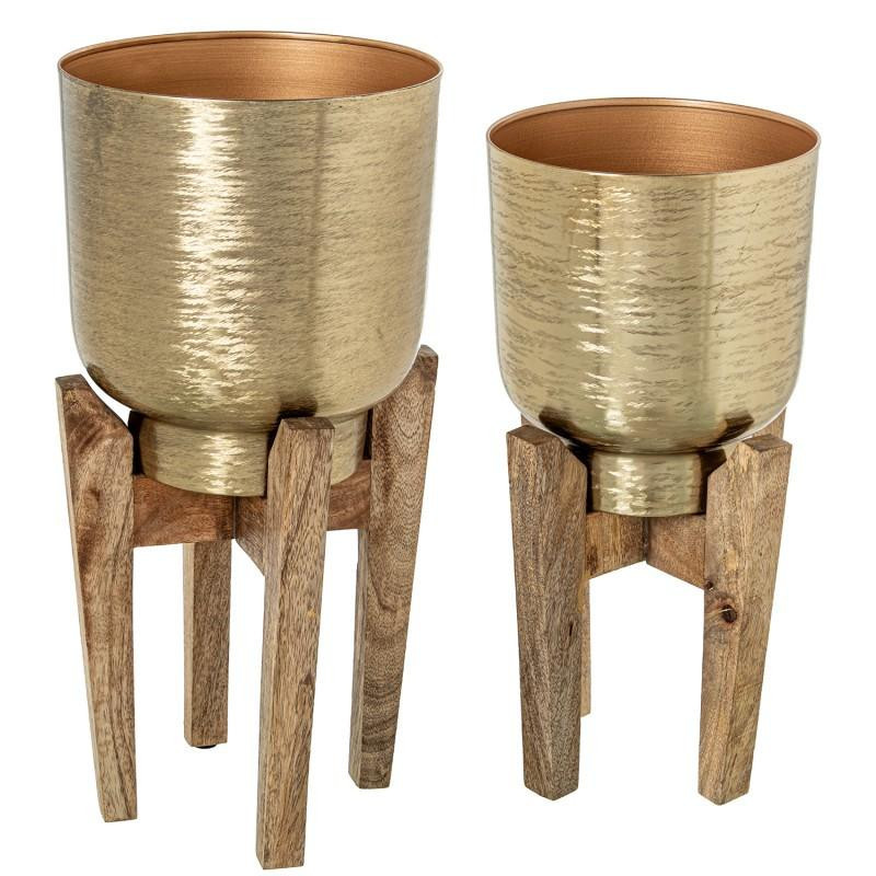 Set de 2 maceteros de metal con base de madera en dorado 46x25x25 cm