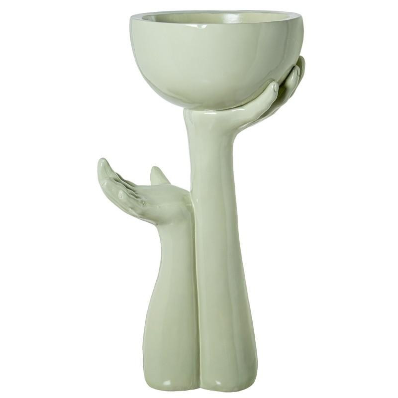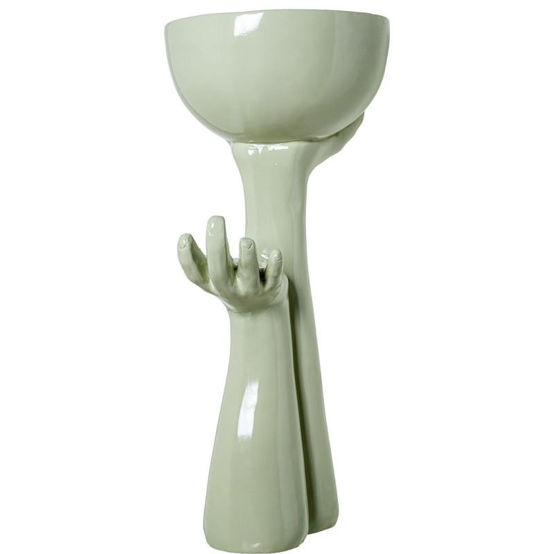 Macetero con 2 manos de pie de fibra de vidrio en blanco brillo 83x46x36 cm