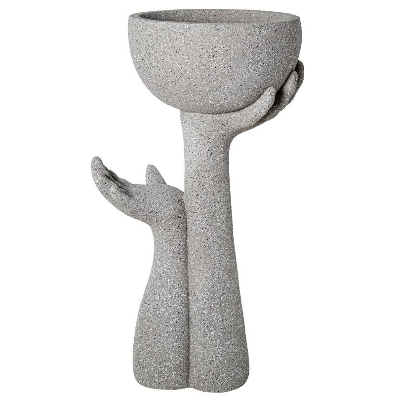 Macetero con 2 manos de pie de fibra de vidrio en gris acabado cemento 83x46x36 cm