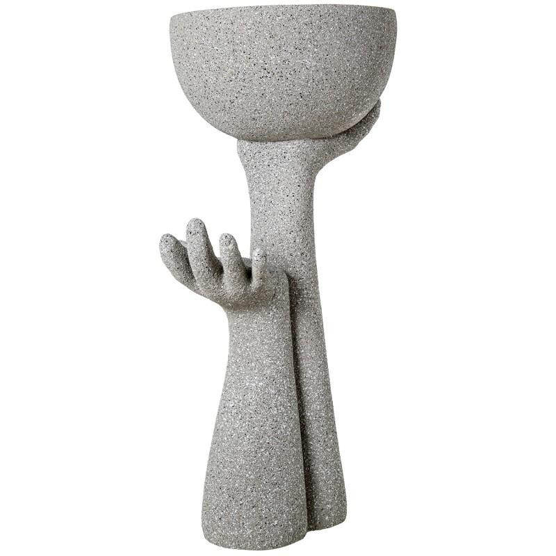Macetero con 2 manos de pie de fibra de vidrio en gris acabado cemento. Medidas: 46x36x83cm