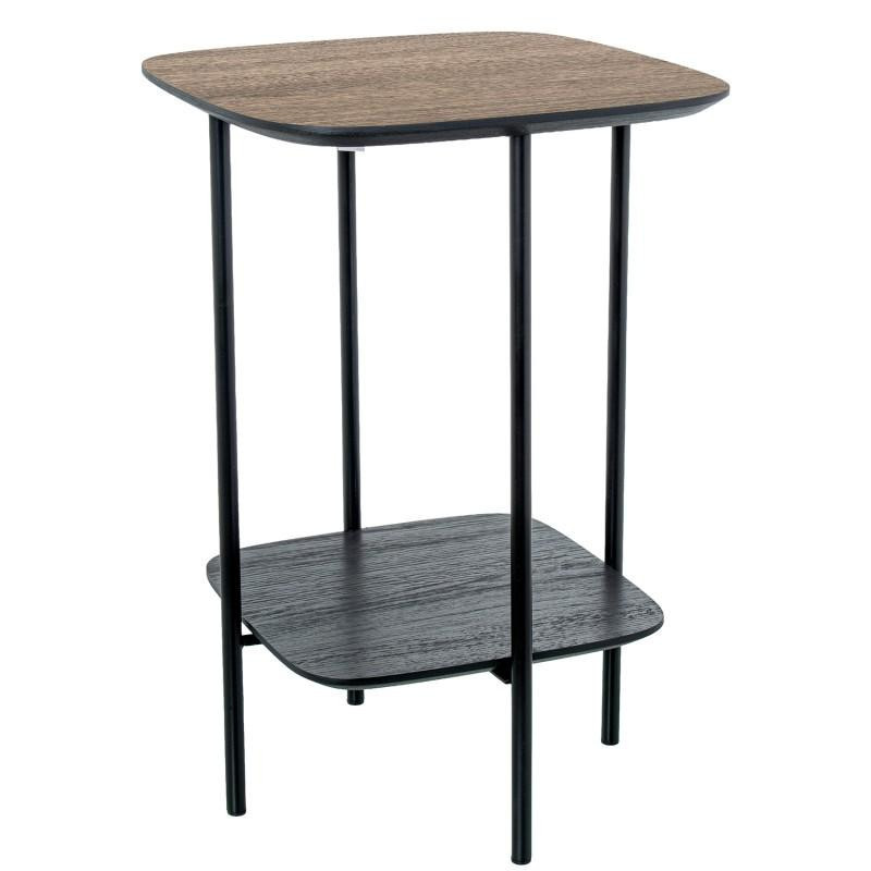 Mesa auxiliar de metal y acabado madera en natural y negro. Medidas: 40x40x60cm