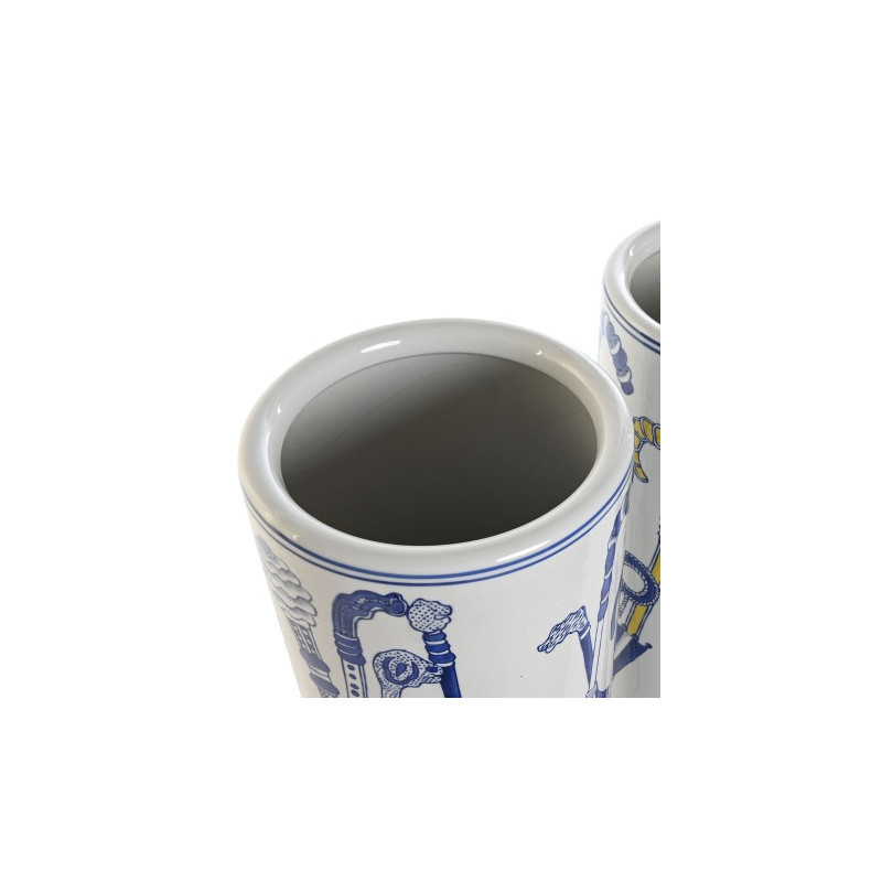 Paraguero porcelana redondo con paraguas azules 19x19x45 cm