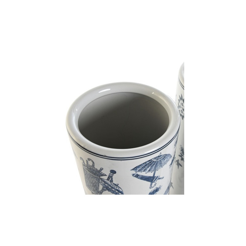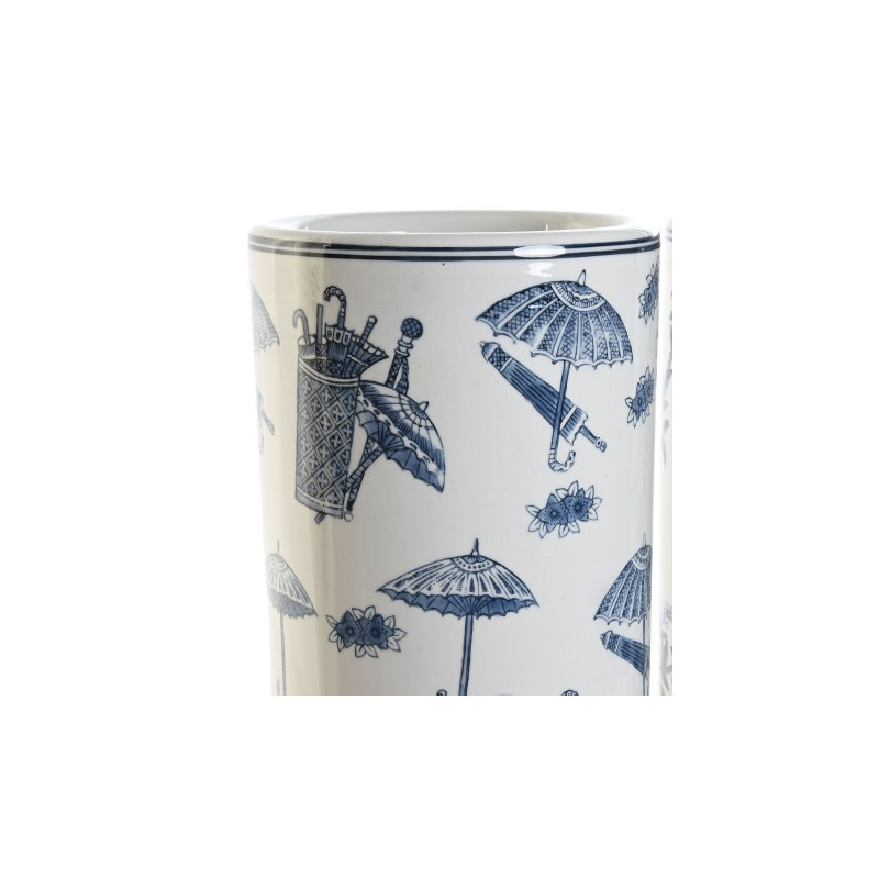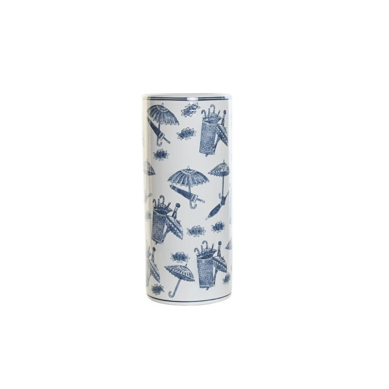 Paraguero porcelana redondo con paraguas blanco y azul 19x19x45 cm