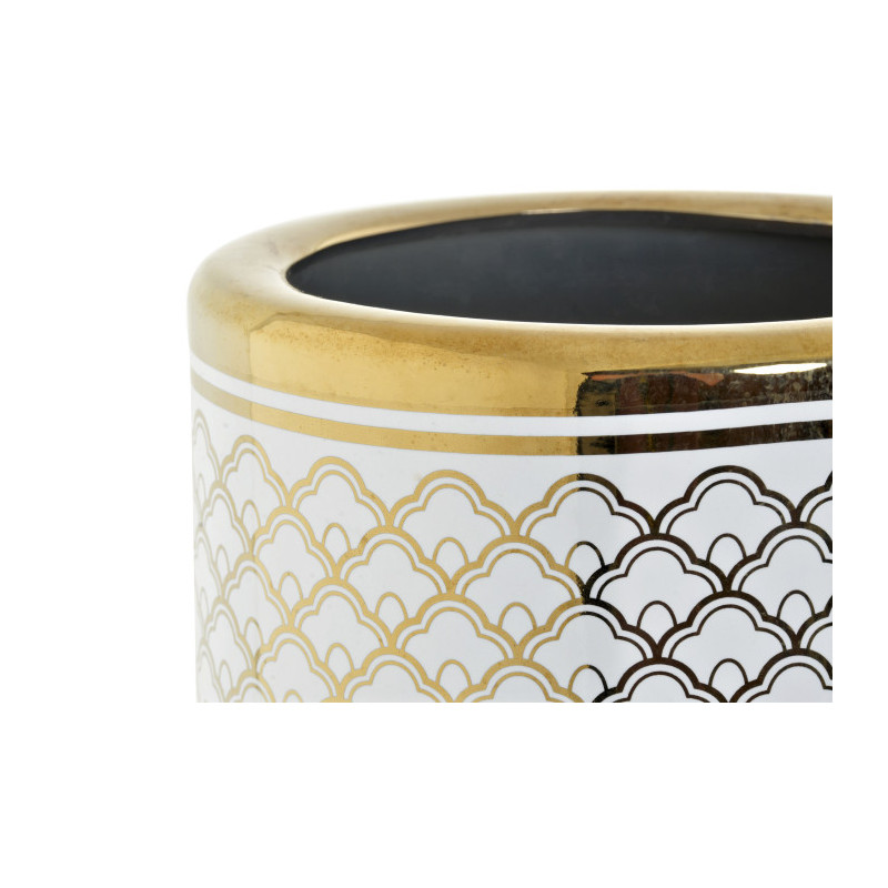 Paraguero porcelana redondo dorado y blanco arabesque. Medidas: 22x22x46 cm