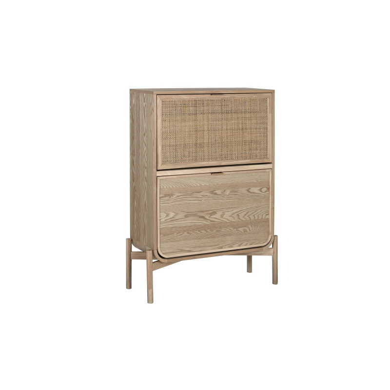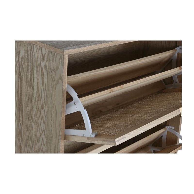 Zapatero madera natural y ratan 2 baldas 76x29x100 cm