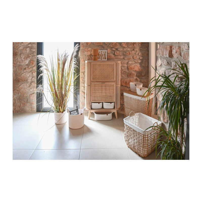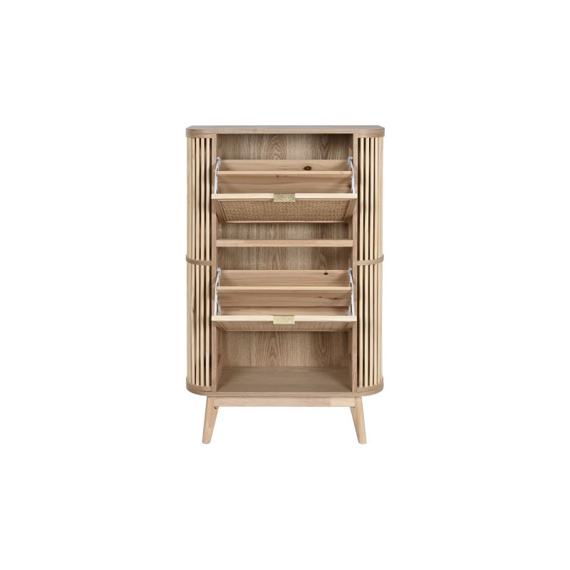 Zapatero madera abeto natural y ratan 2 baldas y estante 70x29x115 cm