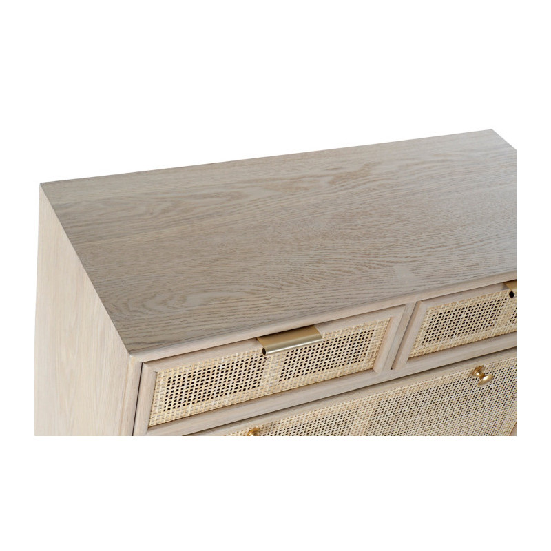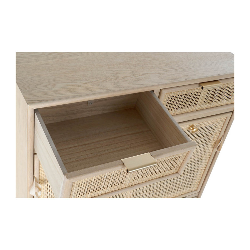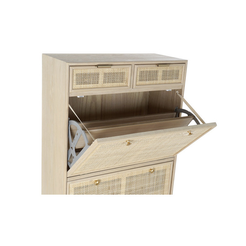 Zapatero madera paulownia y ratan 2 baldas y 2 cajones 70x32x120 cm