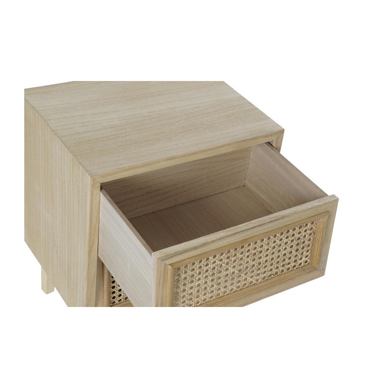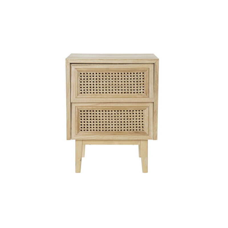 Mesita de noche 2 cajones madera y ratan 43x33,7x56 cm