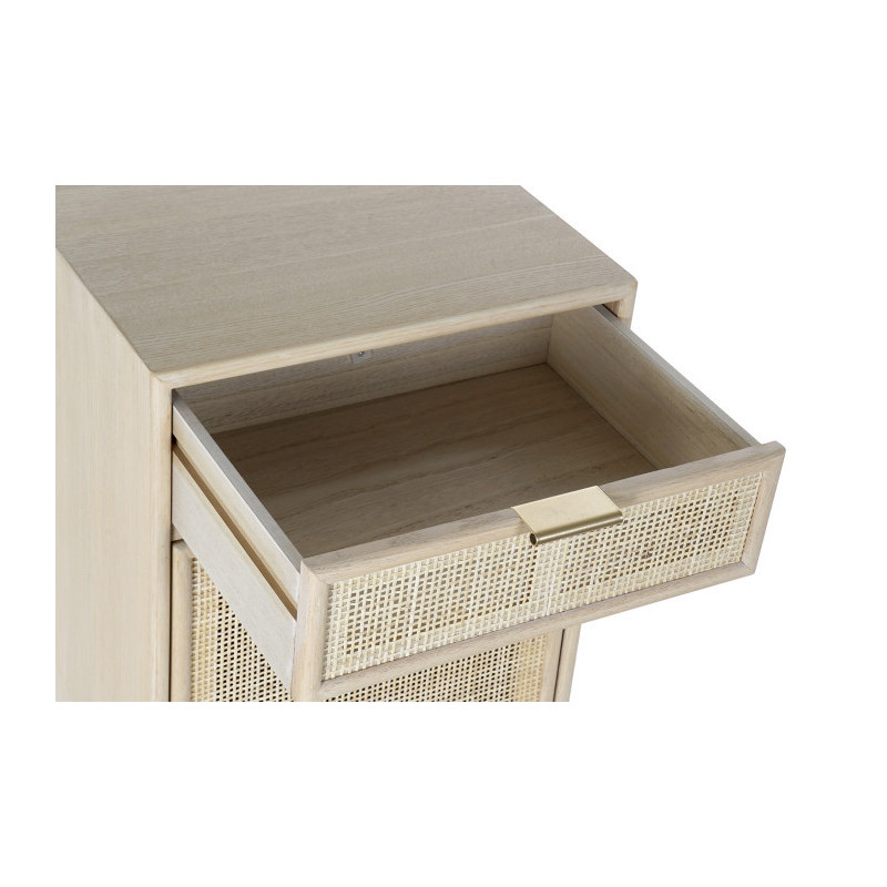 Mesita de noche 2 cajones madera y ratan 42,2x37x70 cm