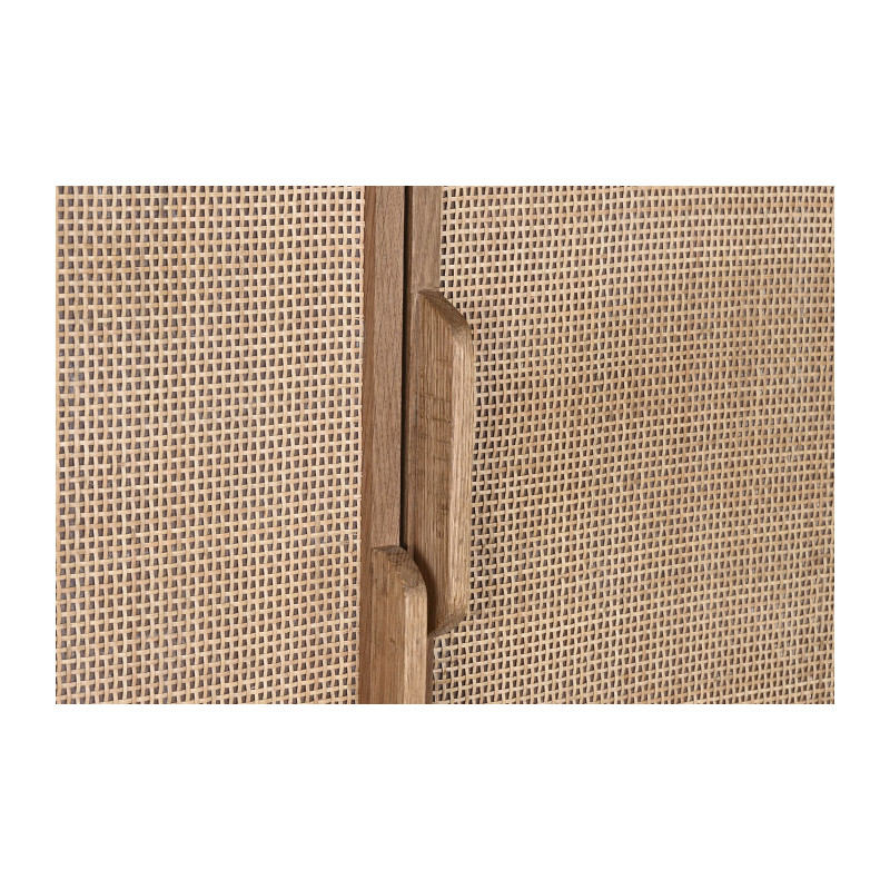 Armario 2 puertas 5 estanterias de madera roble y ratan 91x45x203 cm