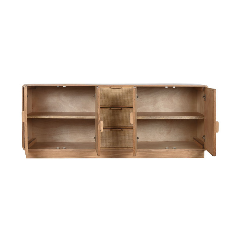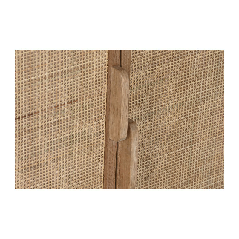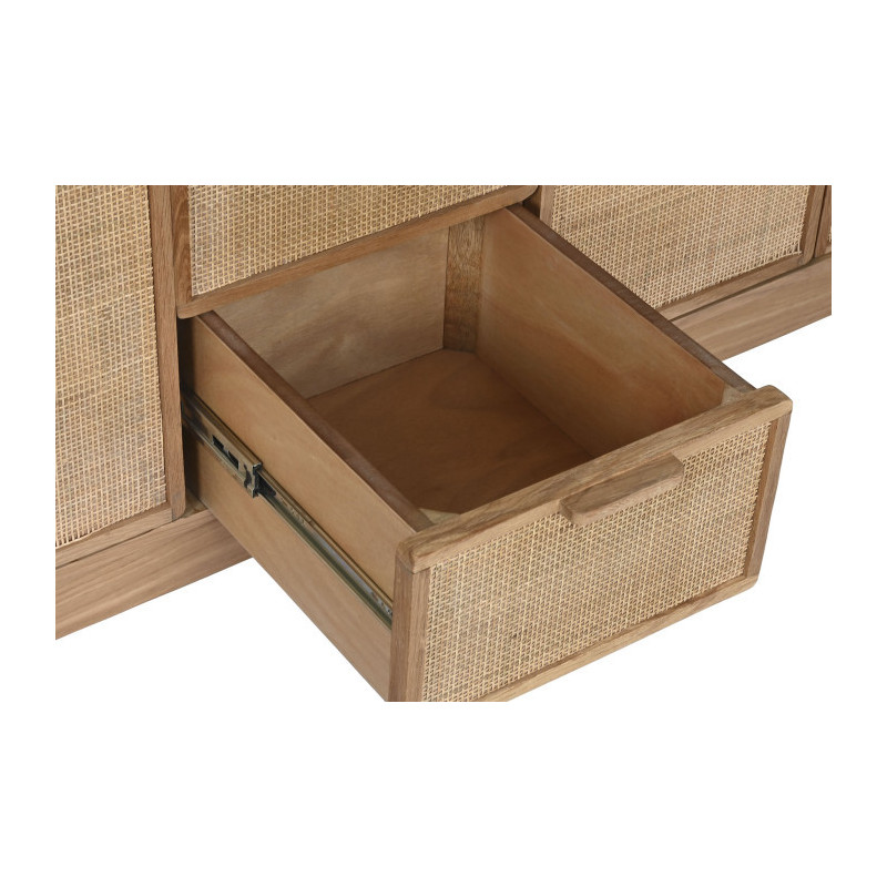 Buffet aparador bajo de roble y ratan con puertas y cajones 182x45x71 cm