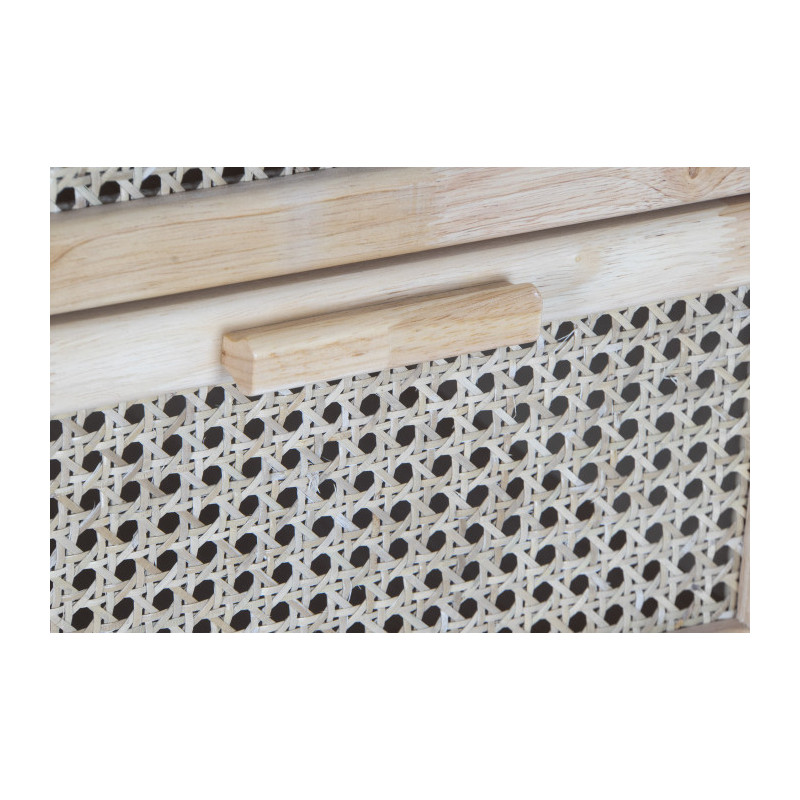 Mesita de noche 2 cajones madera y ratan 40x30x54 cm