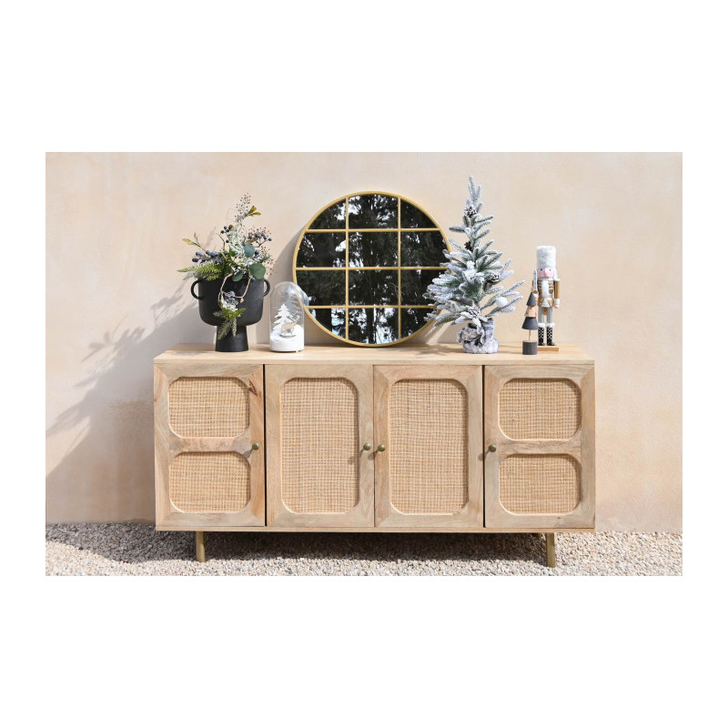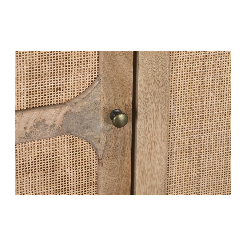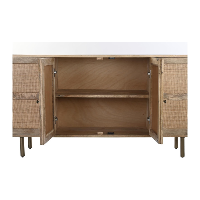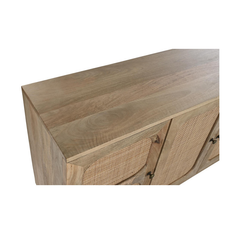 Aparador buffet de madera y ratan de 4 puertas 150x40x76 cm