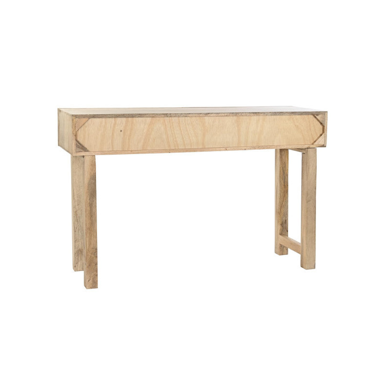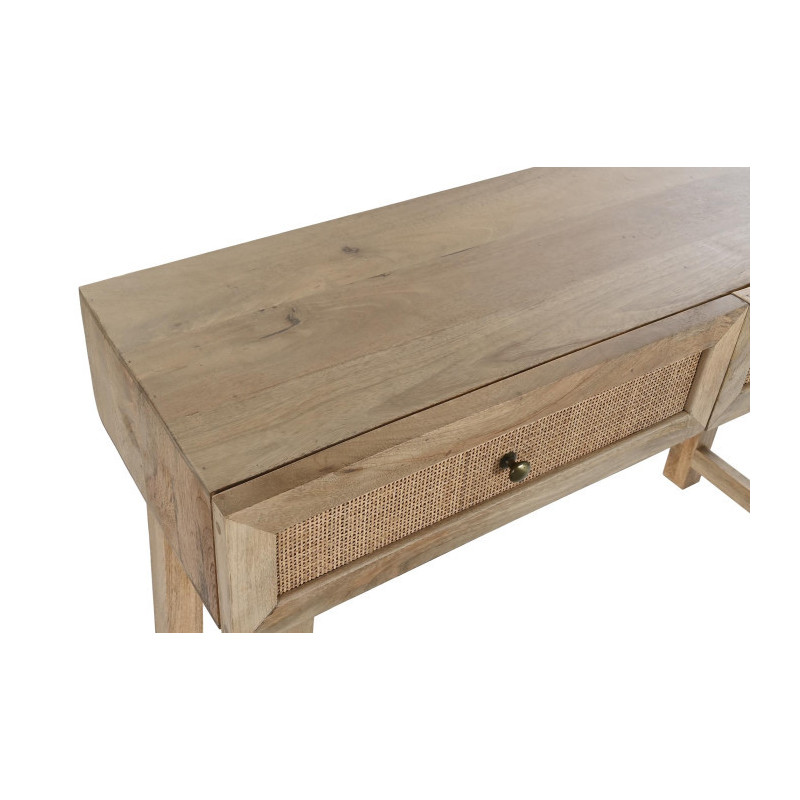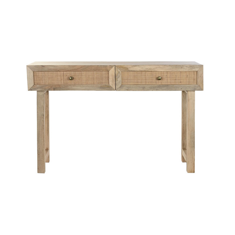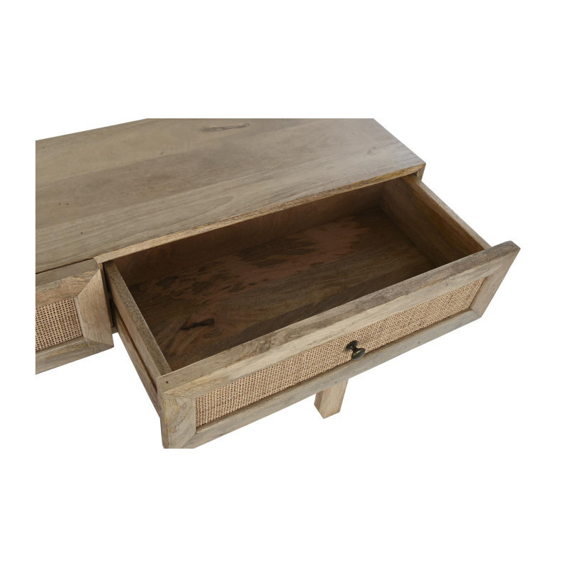 Consola mesa de entrada recibidor de 2 cajones de madera de mango y ratan 120x35x77 cm