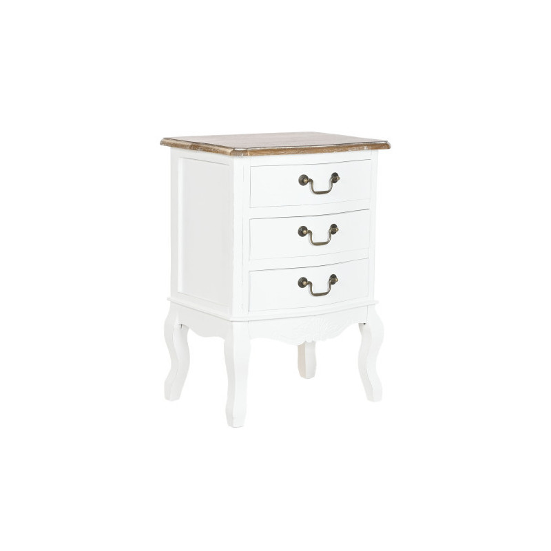 Mesita de noche clasica de 3 cajones madera blanco 47x35x66 cm